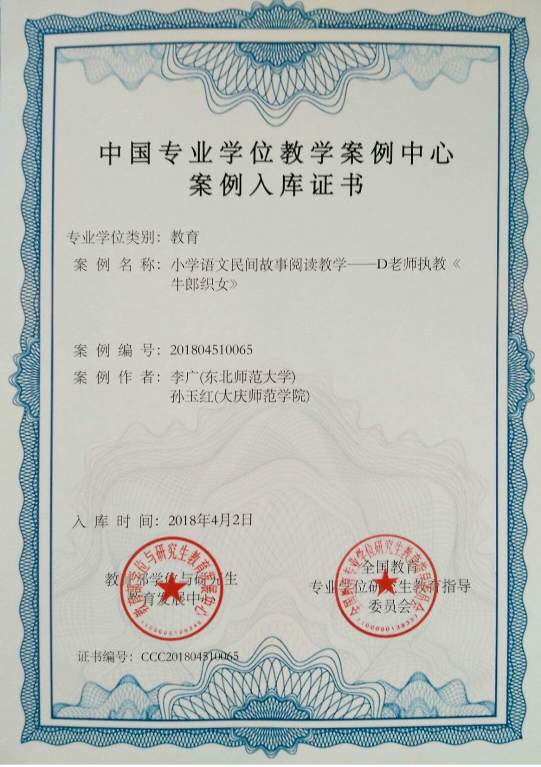 公司伟德国际1946喜获佳讯,孙玉红老师参与开发的教育案例“《小学语文民间故事阅读教学——D老师执教《牛郎织女》”成功入选中国专业学位教学案例中心案例库,实现公司入选中国专业学位教学案例中心库案例的零突破。