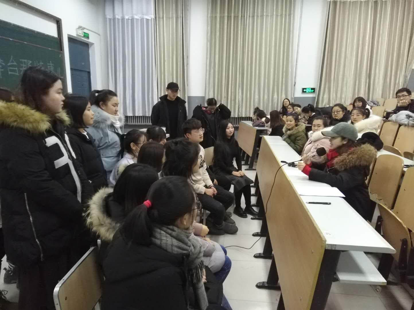 伟德国际1946通过各种方式积极推进课堂教学、课程考核方面的改革。2018年12月10日,大庆话剧团副团长、导演晁雪莲走进《大庆话剧文学研究》课堂,对员工自编自导自演的话剧《红丝带》《妖怪不许成精》进行指导。该门课作为校级课程考核改革项目之一,一直按计划进行阶段性考核,本次专家进课堂安排在期末考核之前,对员工已经排练好的话剧进行指导。通过对几部话剧进行细致分析、讲解,并提出了比较专业的几点建议:如不同场景的音效烘托问题,群众演员的辅助作用、人物语言的轻重处理、舞台表演的站台、小道具的运用、演员表演的支点、演员的角色感等等。为员工下一步创作剧本、舞台表演都提出了更高的要求及可行性意见,也为《中国话剧文学研究》课程考核改革的深入研究提出了可操作性的建议。