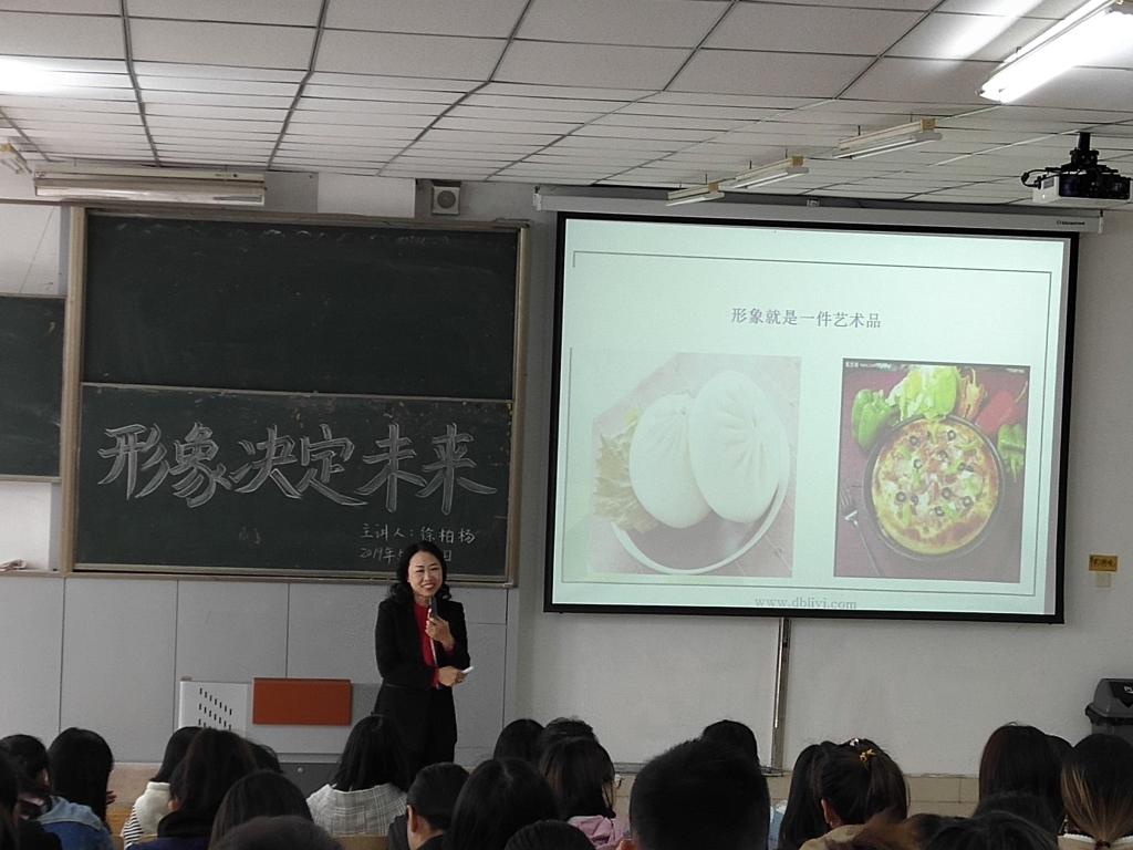 徐柏杨老师围绕“形象决定未来”这一主题向同学们讲述了形象的重要性。在讲座中,徐老师通过礼仪细节现场示范、生动的演示图片、旁征博引的讲解介绍了完美走进职场的必要条件。徐老师从形象决定价值、举止体现修养、礼节博得好感、沟通决定成败等几个方面详细讲述了面试中着装和礼仪的特点、细节、要求等基本知识,使同学们初步掌握了各种提升品味、素质修养与形象魅力的技巧,加深了同学们对形象礼仪知识的了解。