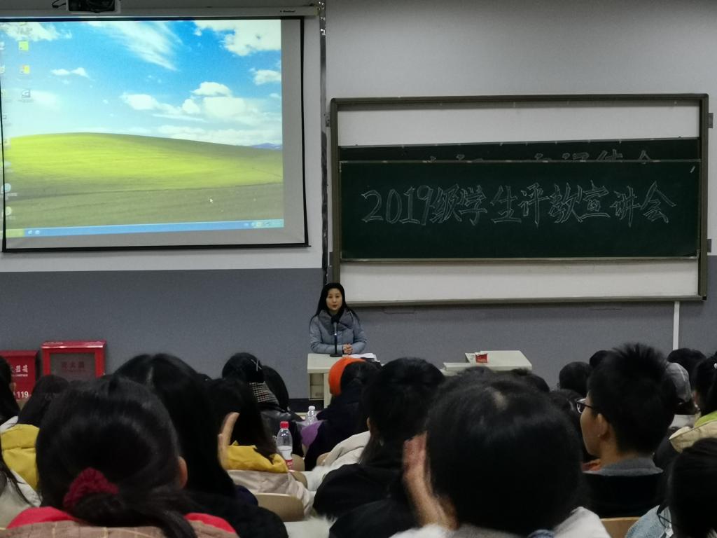 2019年11月28日晚,伟德国际1946在第二教学楼阶梯教室召开2019级员工评教宣讲会。会议由伟德国际1946经理助理徐晶老师主讲,伟德国际19462019级全体员工参加。
