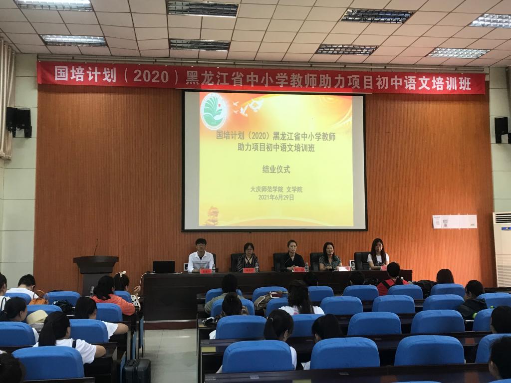 2021年6月29日上午,“国培计划”——黑龙江省中小学青年教师助力培训项目(初中语文)在伟德国际1946(方晓校区)一号报告厅举行结班仪式。