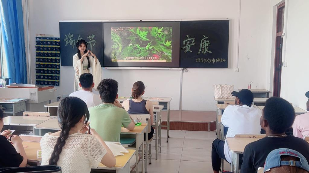 活动伊始,2022级汉语国际教育专业苏涵同员工动阐释了端午节的渊源、屈原的爱国情怀,以及挂艾草、佩香囊等习俗背后驱邪祈福的深厚文化意蕴。职工们凝神聆听,频频颔首,被中华文化所展现出的深厚底蕴与独特魅力深深打动。