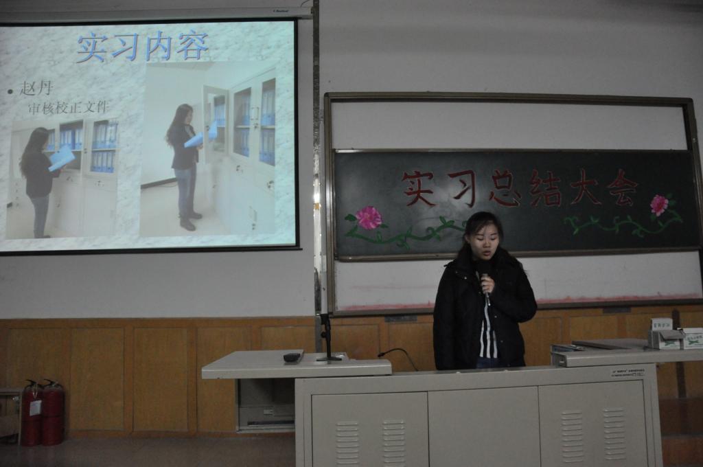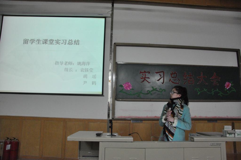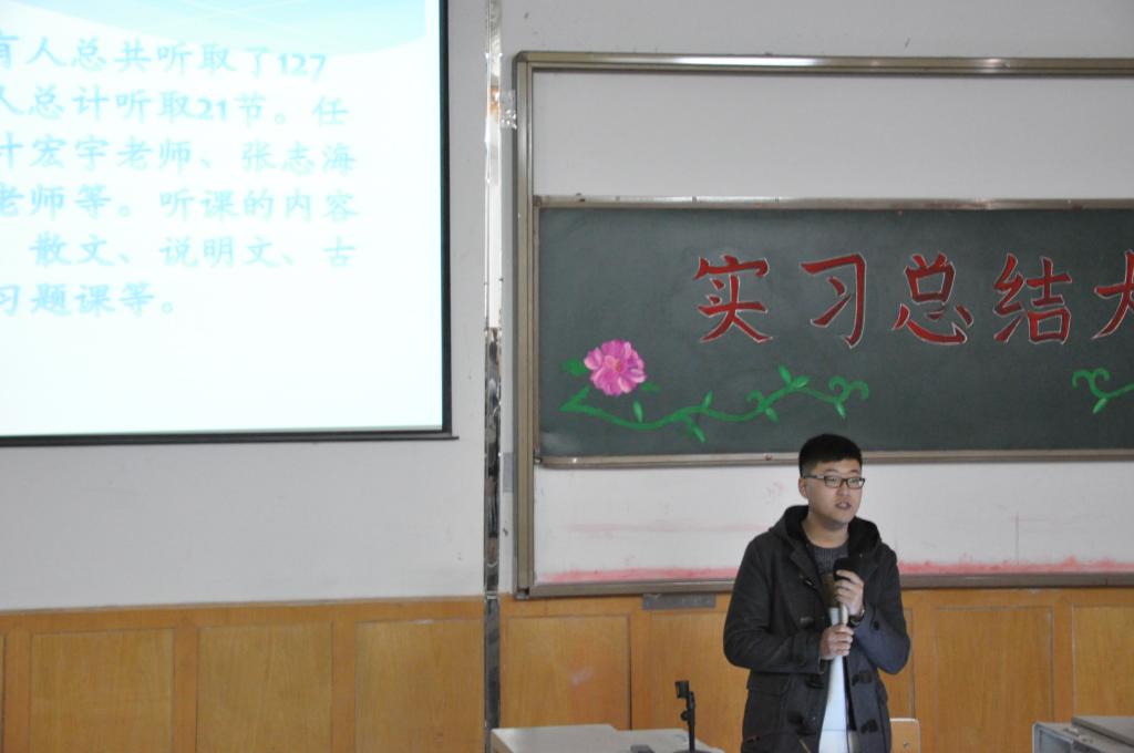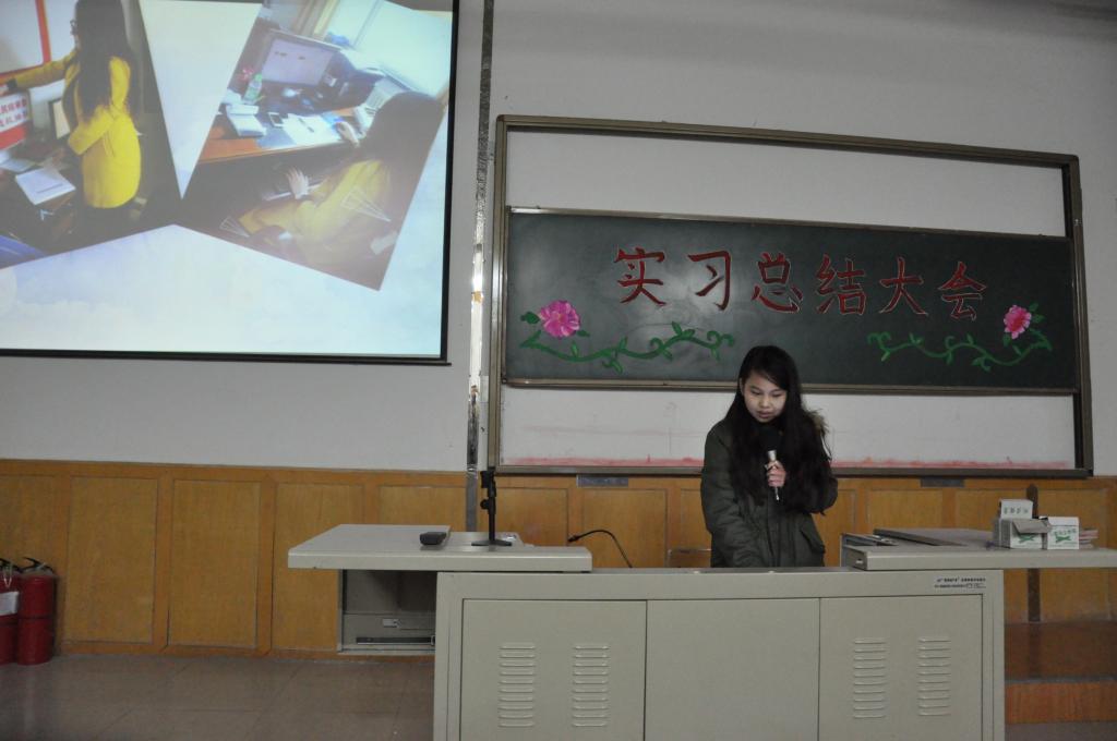 各实习小组结合PPT和小视频汇报本组的实习工作。李梦婷、龚艳君、王大龙、吴美玲、梁欠欠同学代表师范专业的实习生做实习汇报。从教学与育人两个方面与大家交流了实习经验,并表示本次实习经历坚定了他们毕业后投身于教育事业的信心。张骁帝、闻静、赵丹同学代表文秘方向的实习生做了实习汇报。她们在政府部门和企事业单位机关工作,事务繁杂、工作量大,对工作质量要求高。通过实习,她们既熟悉了岗位要求、业务流程,也提升了自身的职业素养。袁钰莹、靳丽同学代表对外汉语专业实习生做实习汇报。同学们通过实习初步掌握了职工汉语教学的方法和技巧。张学兵同学谈了在油田报社实习的辛苦与收获。