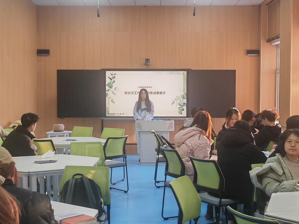 2024年12月10日,2022级汉语国际教育专业在教师技能训练中心304室进行了班主任工作技能训练汇报展示,旨在通过实际操作与汇报展示,提升同学们在班级管理方面的综合能力。