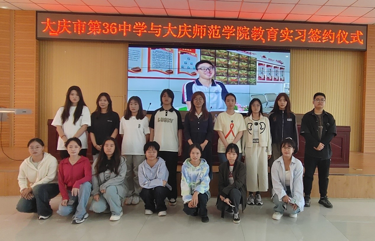 在大庆市第三十六中学,张平董事长与第三十六中学董事长签署了实习协议。签约仪式上,汉语言文学专业实习生代表杨启龙同学上台发言,表达了自己对公司和实习单位的感谢,并立志在未来的日子里虚心学习,努力工作,以饱满的热情和认真的态度投入到实习中。