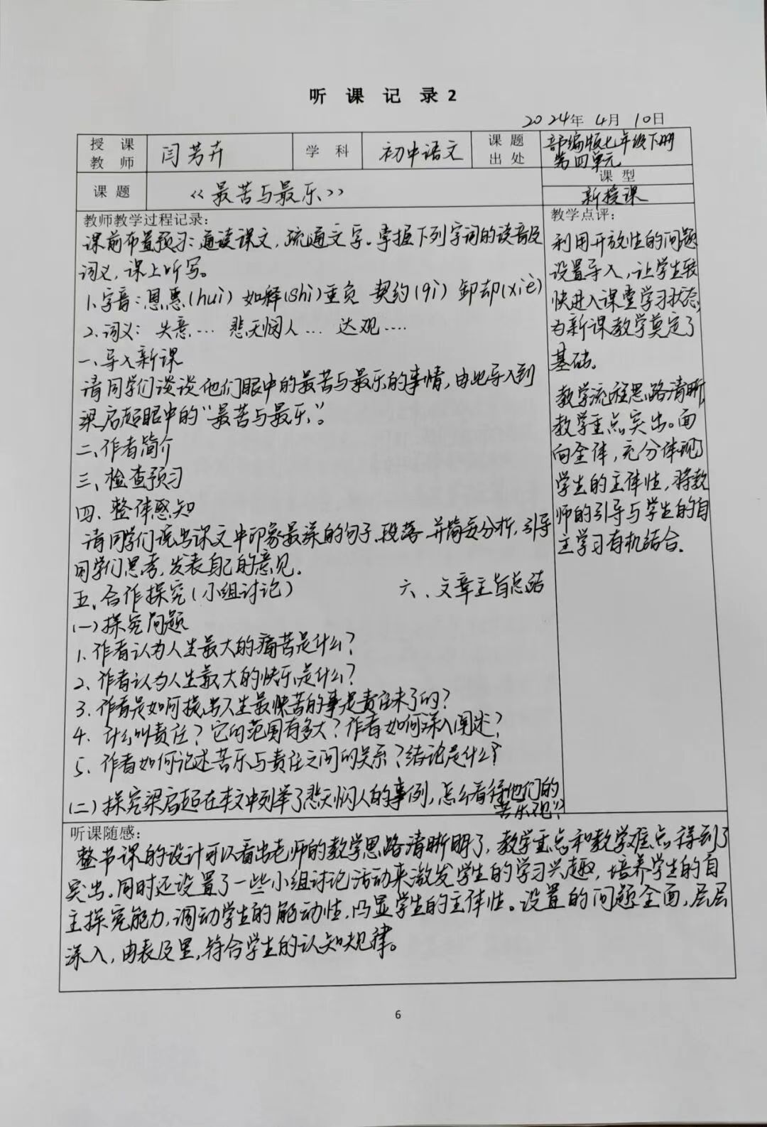 在“教”的层面,关注员工说课的教学设计环节是否完整,重难点问题是否得到解决,旧知与新知过渡是否自然合理,作业安排是否适当;在“学”的层面,关注课程设计与教学内容是否符合初中生对知识的接纳与认知规律,是否兼顾了实现知识目标与对员工核心素养的提升;在“评”的层面,则倾向于正面激励,鼓励自我反思及同伴间的互助评价,每位参与者需提交五份听课反馈,以此促进相互学习。