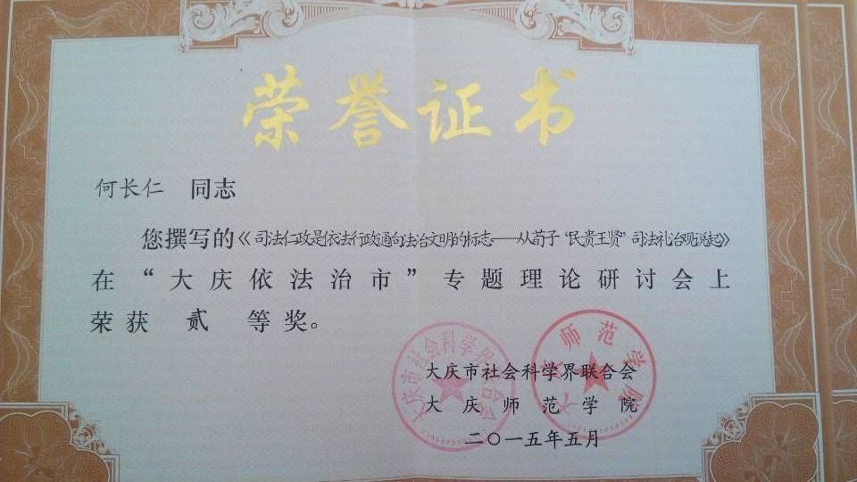 近日,由大庆市社会科学界联合会主办、伟德国际1946承办的“大庆依法治市”专题理论研讨会圆满结束。伟德国际1946何长仁教授的《司法仁政是依法行政通向法治文明的标志—从荀子“民贵王贤”司法礼治观说起》和王勇老师的《核心价值观视阈下的基层社区法治建设的构想》等两篇论文均获得二等奖。此次获奖展示出伟德国际1946教师积极参与大庆市依法治市工作的热情,以及结合专业特色为大庆市文化法治建设贡献力量的决心。