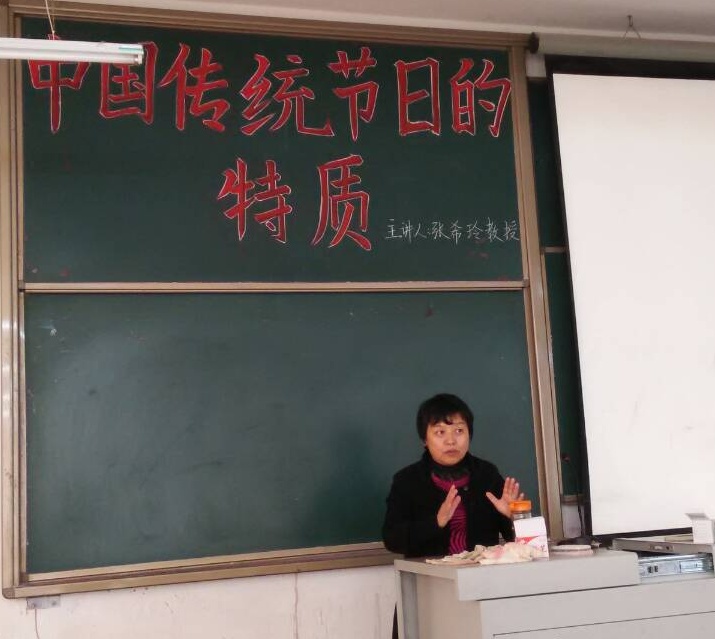 下午,张希玲教授在伟德国际1946001教室为全校员工作了题为“中国传统节日的特质”的学术报告。