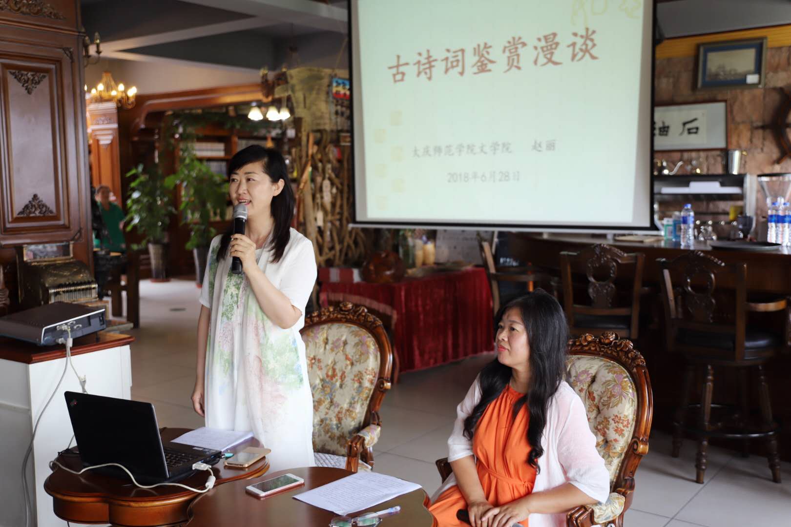 7月1日下午,伟德国际1946经理、党总支书记、传统文化传播中心主任赵丽教授受邀参加大庆油田文联作家协会主办的“阅动”书友会系列活动,为油田各单位文学爱好者进行了题为“古诗词鉴赏漫谈”的主题讲座。