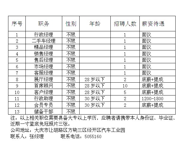 方晓尼桑4S店招聘