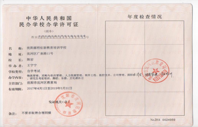 沈阳源程教育是沈阳市教育局批准成立的一所正规文化课补习公司。公司地处沈阳市中心地带,占地面积3000余平方米,建筑面积7000余平方米,教职员工百余名,校内基础设施完备,拥有标准化教室28个,多媒体教室6个,员工公寓32间。另配备员工淋浴间、餐厅、超市,并拥有1200平米的操场供员工课间活动。