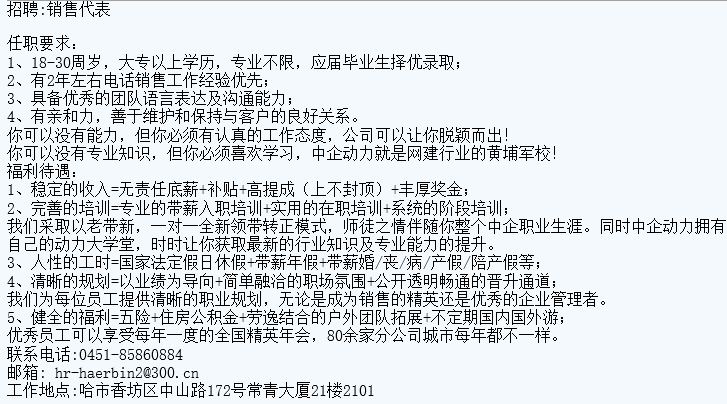 中企动力科技股份有限公司哈尔滨第二分公司招聘