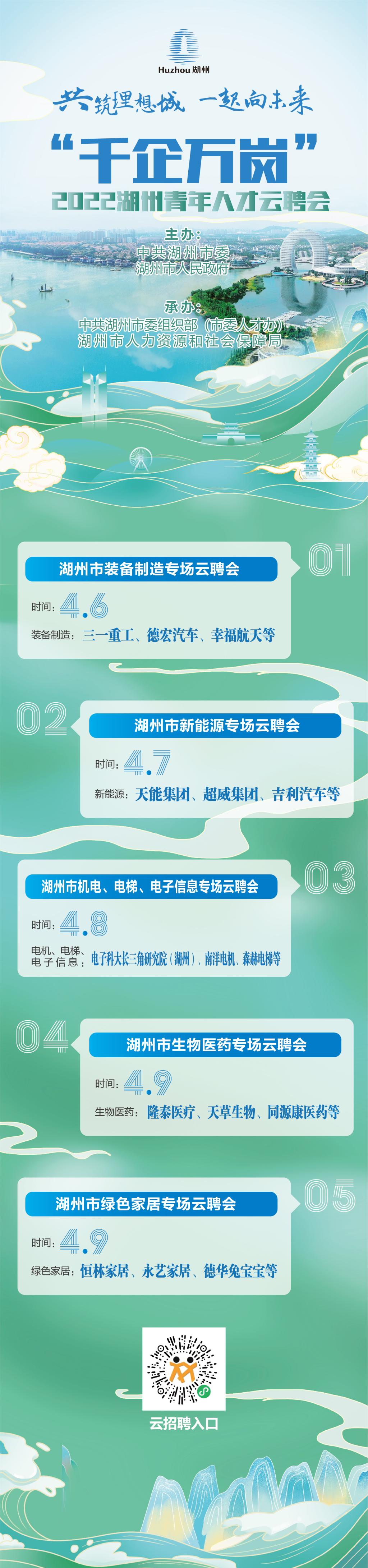 招聘通知:浙江湖州行业类专场线上招聘会4月6日开始。
