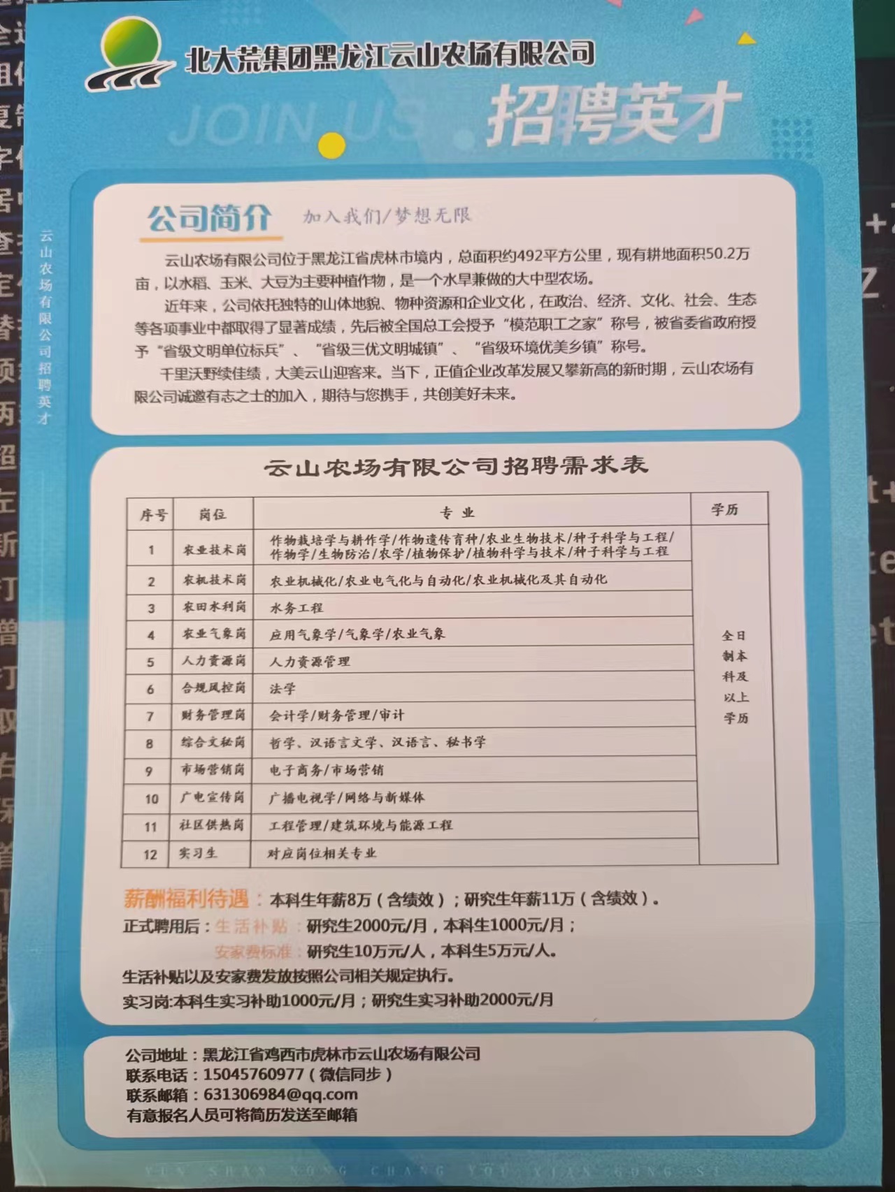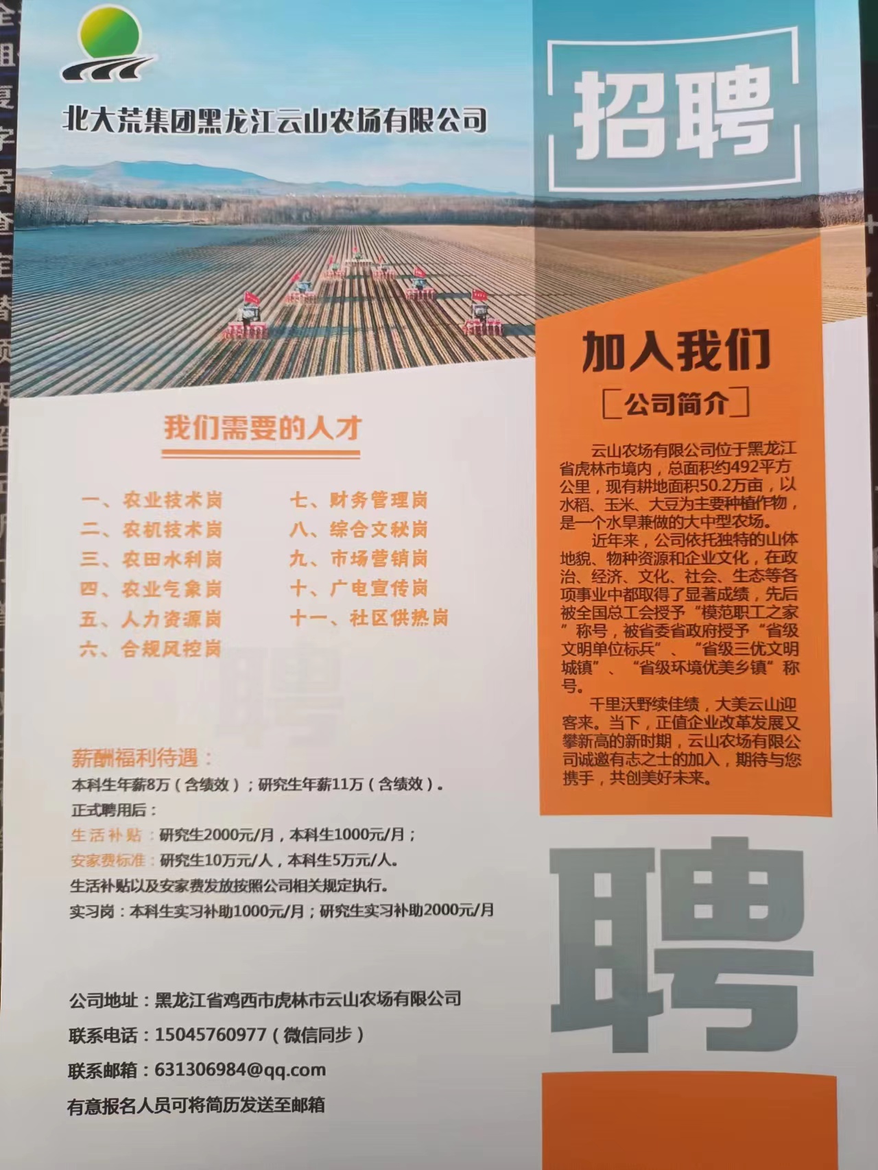 北大荒集团黑龙江云山农场有限公司招聘信息