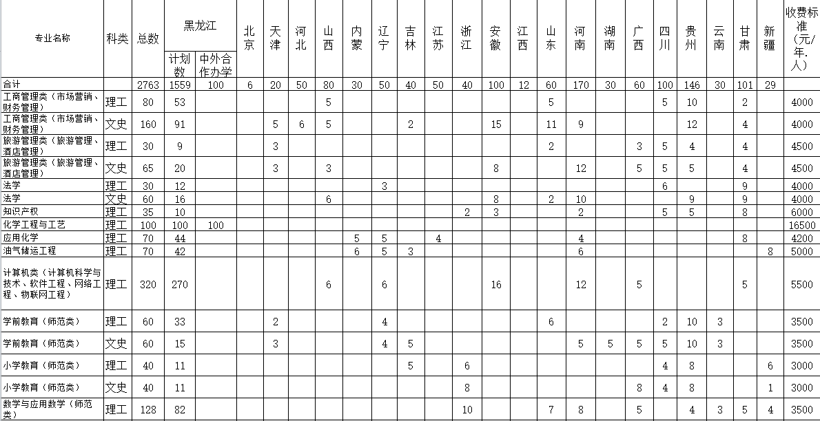2017年分省分专业招生计划及收费标准