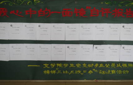 古人云:“以铜为镜,可以正衣冠;以史为镜,可以知兴替;以人为镜,可以明得失。”自古以来,“镜”都有督促人们自查自省的深刻内涵。2013年3月25日,公司党支部向院内所有员工党员提出了以“我心中的一面镜”为主题的自评报告征集活动。经过对上交自评报告的认真审阅,筛选出优秀的自评报告,并在伟德国际1946二楼公展。从“自评报告”展示之日起,吸引了校内诸多师生驻足观看。