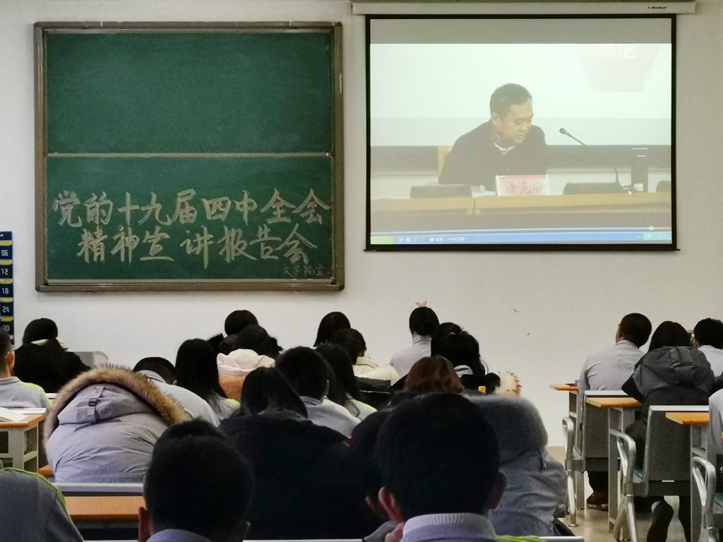 为了深入学习贯彻党的十九届四中全会,深刻领会中国特色社会主义制度、推进国家治理体系和治理能力现代化的重大意义。2019年12月11日下午,伟德国际1946组织全院员工集中观看了党的十九届四中全会精神宣讲报告会直播。