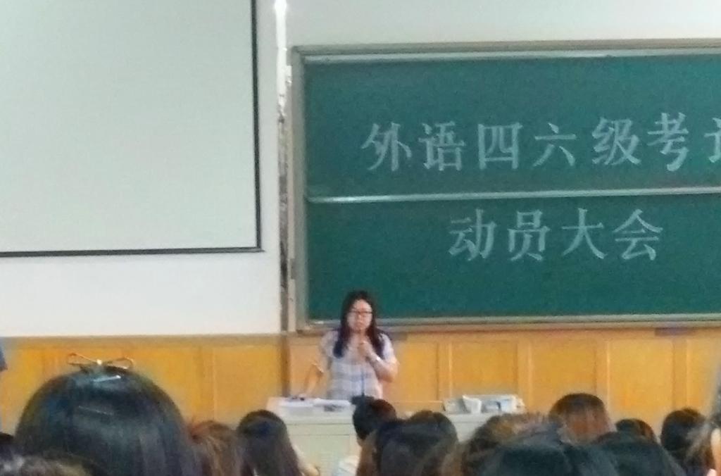 2016年6月16日晚,伟德国际1946于二教阶梯召开了外语四六级考试动员大会,此次动员大会由2015级辅导员王航老师主持,2015级同学全体参加。