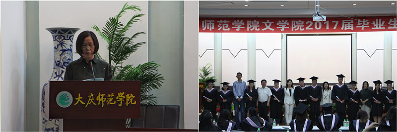 典礼上,精心剪辑的2017届毕业生纪念视频,记录了四年老员工活的点点滴滴,师长语重心长的寄语、同窗温馨感人的赠言、学弟妹真诚美好的祝福,让很多毕业生热泪盈眶;教师代表车晓彦老师回顾了自己的教员工涯,几十年来她无比欣慰与自豪的见证了一批又一批毕业生学有所成、步入社会,长江后浪推前浪,她希望毕业生们能扬起信念的风帆,今后能在各自的岗位上发光发热;怀着留恋和不舍的心情,毕业生代表陈奕璇回忆了在伟德国际1946学习、生活的点滴细节,分享了考研体会,畅谈了四年来的收获和感悟,同时深切表达了对母校的不舍、对老师、同学的依依惜别之情。