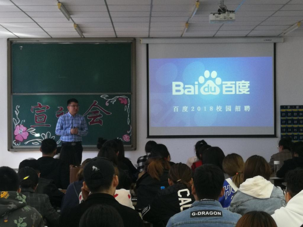百度作为全球最大的中文搜索引擎,为数百万家企业提供网络营销推广方案及服务,已成为最受企业青睐的互联网营销推广平台。此次宣讲会,申总监结合PPT讲解的方式为同学们详细地介绍了公司环境、招聘岗位和薪酬福利。他着重介绍了同学们所关心的薪酬福利方面的内容:丰厚的实习薪资,含有餐饮补贴、通讯补贴、交通补贴、六险一金、周末双休等。同时他也提出了工作要求,在学历、技术能力、工作经验、职业素养等方面需达到标准。申总监将学历与学习能力相结合,作为人才选拔的重要标准之一。最后申总监鼓励同学们积极应聘,来百度发挥自身的能力与才干。