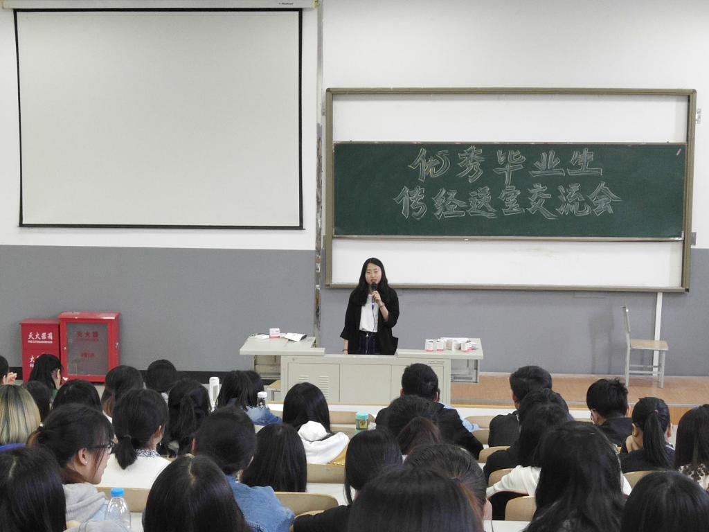 交流会上,魏加莹从自身在校的学习和成长经历谈起,谈到了在校期间如何更系统、更高效地学习专业知识;如何通过各种实践和活动积极地锻炼自己,面对创业或就业时,如何进行理性抉择;面对毕业实习时,如何选择实习单位、积累实习经验。她还分享了自己的教团队格证考试经验,提醒同学们要保持良好的学习习惯,笔试要多看书多刷题,做到“眼到手到口到心到”;面试要重视教学设计的书写和落落大方的台风,面对一些突发状况要学会随机应变,冷静处理,保持平静淡定的心态。她建议学弟学妹们,要树立阶段性的学习目标,平时注重实践,狠抓专业知识,拓宽视野思维,严格要求自己。最后,在场的同学们就自己关注和疑惑的问题积极提问,魏加莹同学耐心细致地予以解答,并针对性地给出了建议,同学们受益匪浅。