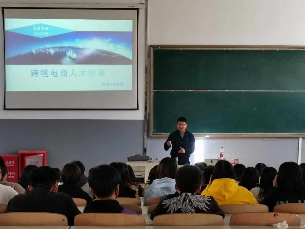 会上,2019届毕业生辅导员龙秀娟老师,鼓励同学们积极参与各类招聘,把握机会,主动了解就业单位的相关信息。阿里巴巴跨境电商就业岗位分布于各类一线城市、二线城市,集团具有较强的创新和技术研发能力。宣讲人申经理,以幻灯片的形式,分类介绍了企业规模、行业前景、招聘岗位、晋升空间四个大模块。通过申经理详尽的介绍,同学们清楚了解了招聘流程,跨境电商运营岗位的工作内容及薪资待遇,深刻认识到过硬的业务能力和丰富的社会实践经验,对于就业的重要性和必要性。