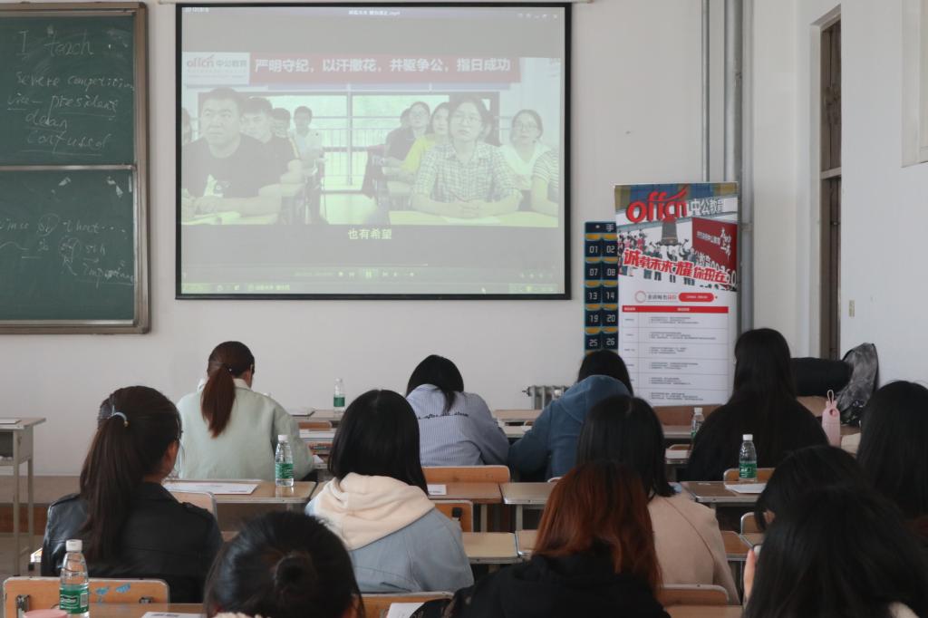 中公教育是国内领先的职业就业培训综合服务提供商,连续多次荣获“高新技术企业”荣誉证书。会上,马老师向同学们展示了以“诚载未来,耀你现在”为主题的宣传片,使在座的同学们对中公教育的运营现状、发展规划有了基本了解。同时,他以幻灯片的方式,为同学们详细介绍了中公教育的企业介绍、招聘计划、福利待遇、薪资待遇等基本情况,并且重点强调,中公教育培训带保底薪资具有确保培训的高质量高效率的优势,此次招聘岗位有讲师类岗位和非讲师类岗位,可大面积覆盖同学们的就业需求。在场的同学们积极与马老师交流,针对自身的特长主动了解相关招聘细节。
