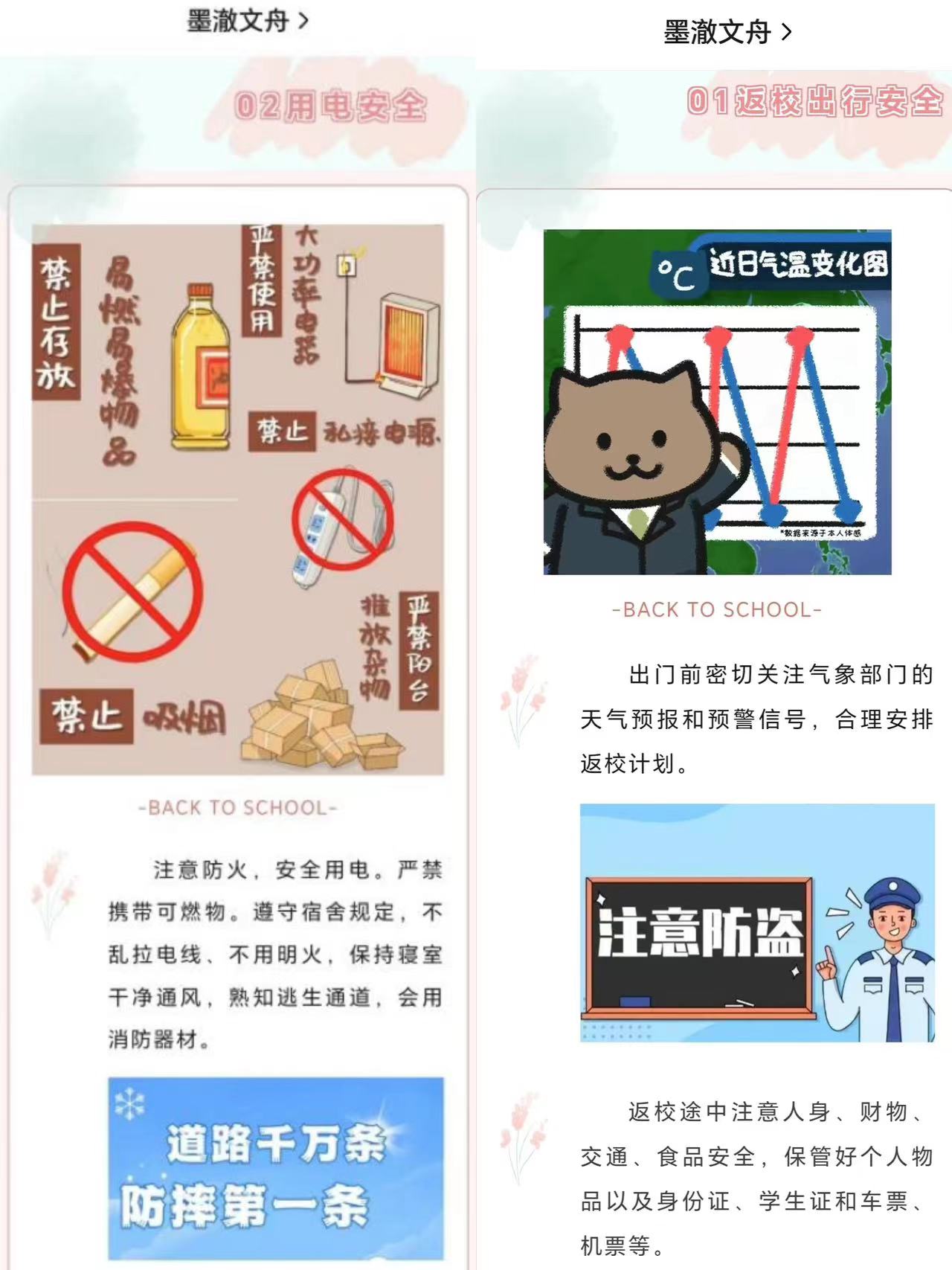 返校前,伟德国际1946通过微信公众号向全体同学推送返校安全提示,提醒同学们注意返校过程中的人身安全、财产安全、网络安全,做好开学准备。并及时发送返校期间天气预报、积雪融化等安全出行提示,提醒同学们做好防寒保暖,注意校园出行安全。