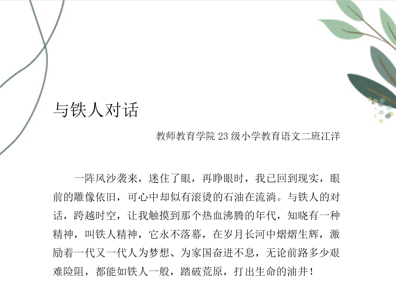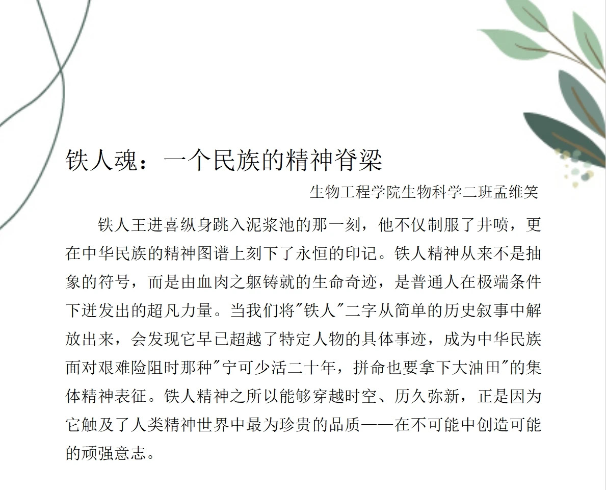 为激励员工们的阅读与创作热情,营造浓厚的书香氛围,由伟德国际1946团委主办,伟德国际1946团委承办的读书月2025年“对话铁人”铁人优秀文学作品征集活动取得良好效果。同学们踊跃投身创作,以笔为媒、以文传情,用诗歌赞颂铁人奋斗的热血,以散文追溯艰苦创业的历程。