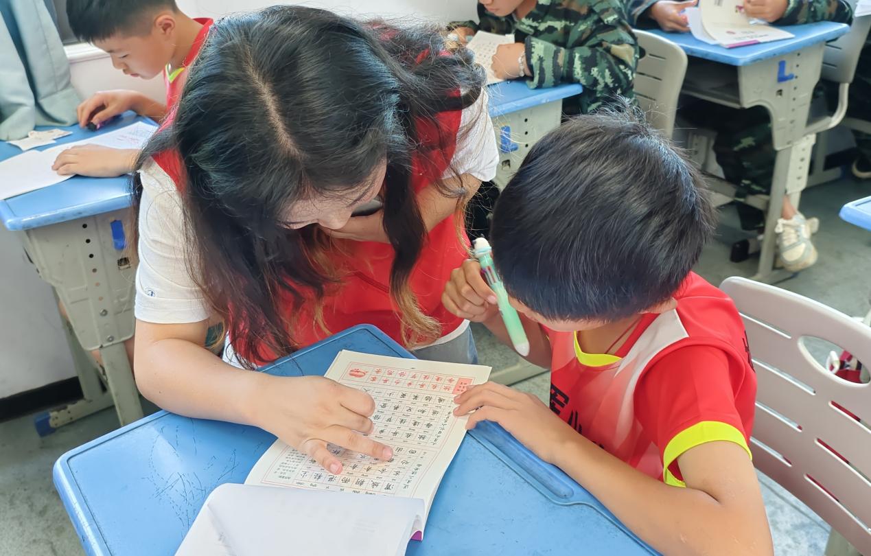 借助数字微课,实践团教小员工书写写规范汉字。肖淼供图