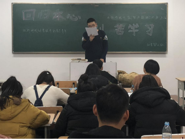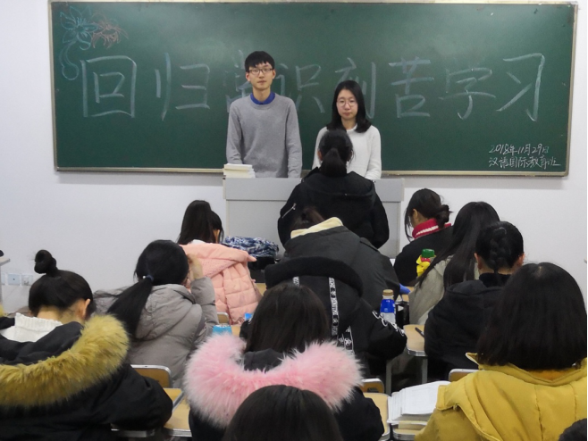2018年11月29日晚,伟德国际1946各班级开展“回归常识,刻苦学习”主题班会。引导同学们强化“立德树人、刻苦学习”的责任意识,努力成为一名具有铁人精神特质的社会主义建设者和接班人。