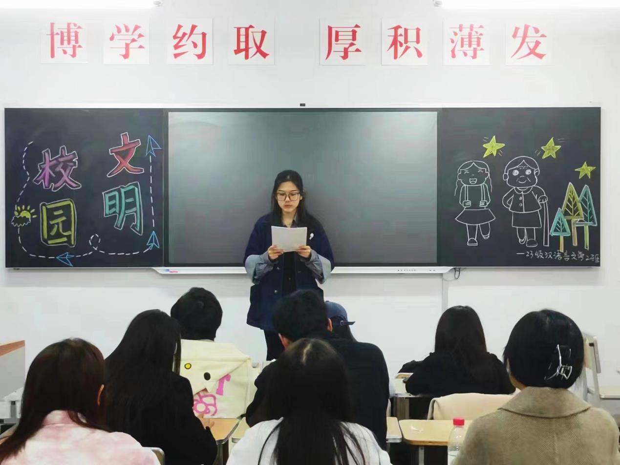 本次活动主要以主题班会的形式展开,由班级负责人向同学们介绍了校园文明公约的内容和实行的必要性,深入分析了作为新时代的青年,树立良好的道德风尚的重要意义。同时,班级负责人提出了热爱劳动、珍惜劳动成果的倡议,鼓励大家“一粥一饭,当思来之不易”,有效提高了同学们节约粮食的意识,激发同学们热爱劳动的社会责任感。同学们表示,将严格遵守校园文明公约的内容,规范言行举止,提高自身文明程度,争做新时代文明青年。