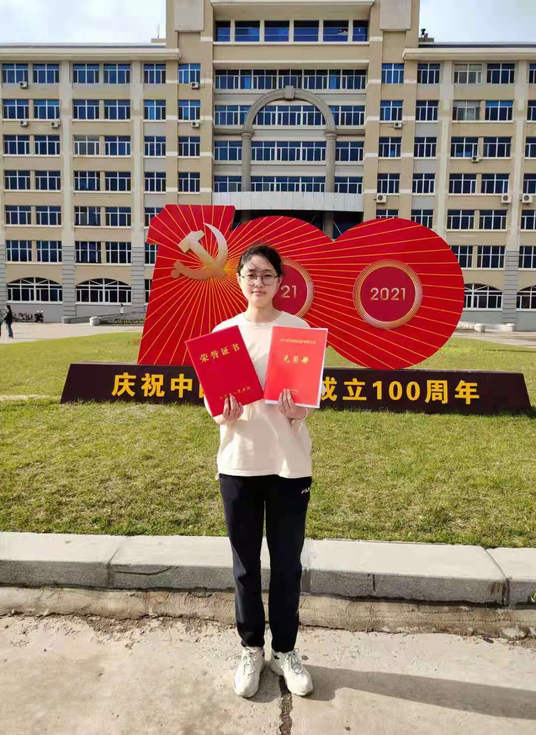 她求学严谨,勤奋刻苦。在课堂上不会的知识点,课下主动询问老师,通过自己的积极思考与老师的耐心讲解,做到准确掌握。除此之外,在课余时间,她广泛涉猎其他专业知识。曾在高中的英语竞赛中获得省级二等奖的她,保持着阅读英文报纸的良好习惯,锻炼自学能力和翻译能力,通过参加公司组织的英语竞赛进行检验。课余时间她会阅读大量的书籍,拓宽自己的知识面,在大二期间参加了普通话测试,并获得了二甲等级证书;主持了“庆师圈”微信公众号的老员工创新创业项目并顺利结题,进一步增强了自身的实践能力。在她的不懈努力下,获得了二等奖学金和“优秀共青团员”的称号。学业上的成果,没有让她沾沾自喜,而是始终牢牢记得习近平总书记说的那句话:“中国共产党人的初心和使命,就是为中国人民谋幸福,为中华民族谋复兴。这个初心和使命是激励中国共产党人不断前进的根本动力。”她坚持帮扶学习能力弱的同学,积极参与各类学风建设活动,为良好的班风学风建设贡献力量。在她热情奉献和带动下,同学们学习热情不断高涨,2019年荣获“先进班集体”荣誉称号。