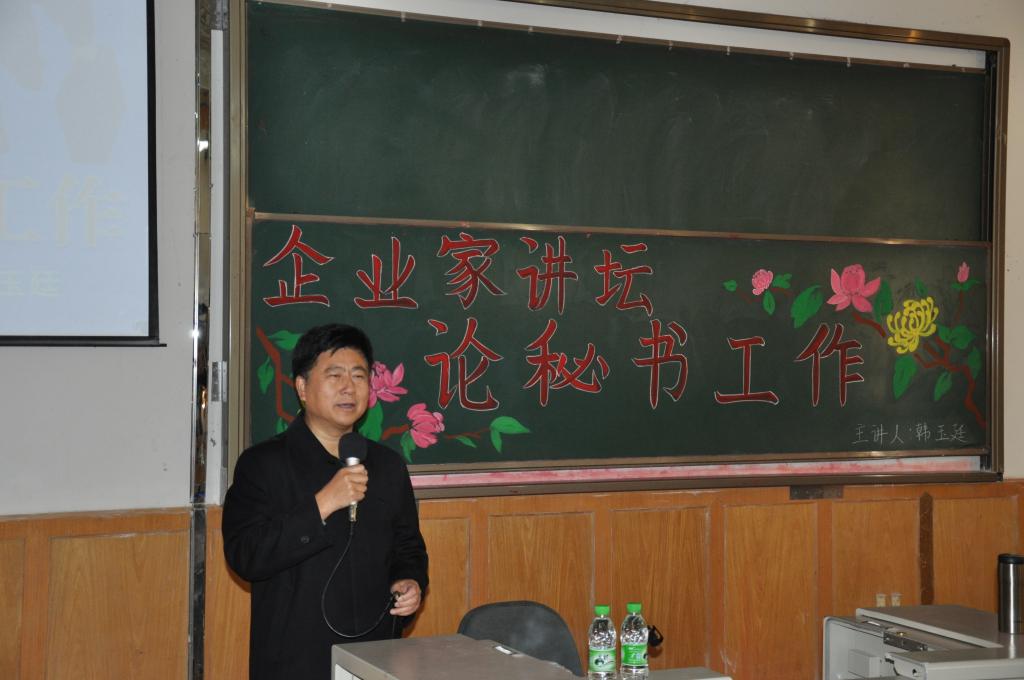 11月18日下午,伟德国际1946承办的企业家讲坛顺利举行。本次企业家讲坛邀请了大庆中石油昆仑燃气有限公司党委书记、纪委书记、工会主席韩玉廷为秘书学专业师生作了“论秘书工作”的专题讲座。