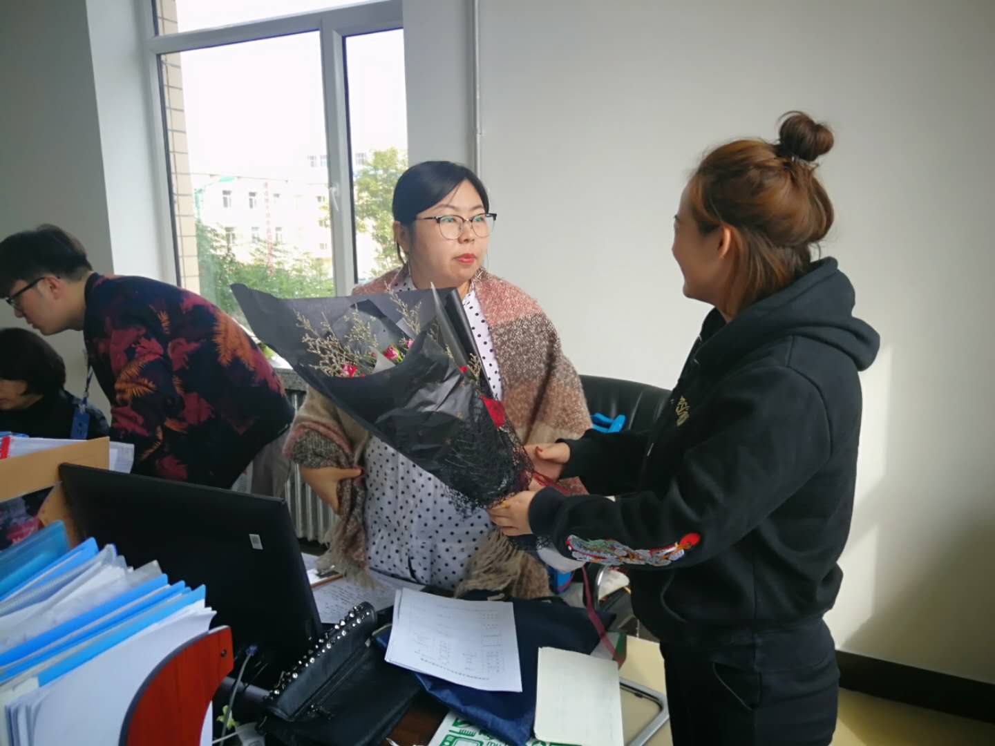 本次活动由伟德国际1946团总支员工会干部发起,员工们通过绘制贺卡、奉送鲜花、诗歌朗诵、发送电子信息的形式表达对教师们的无限爱意、真心的祝福和衷心的问候。员工们手持鲜花,向教师们致以节日的问候,祝全体教师节日快乐,并感谢每一位教师辛勤的付出。“老师,您辛苦了!祝您节日快乐!”听到员工们真挚的问候,接过同学们饱含深情的鲜花,老师们脸上也洋溢着幸福的表情。员工们用纸盒、丝线等用心设计了种类多样的贺卡,在上面刻上了祝福的话语,纷纷赠送给各位老师。老师们也满怀深情地向同学们阐述了自己的教师梦,表示将坚持对这份职业的热爱,为同学们的成长发展贡献自己最大的力量。