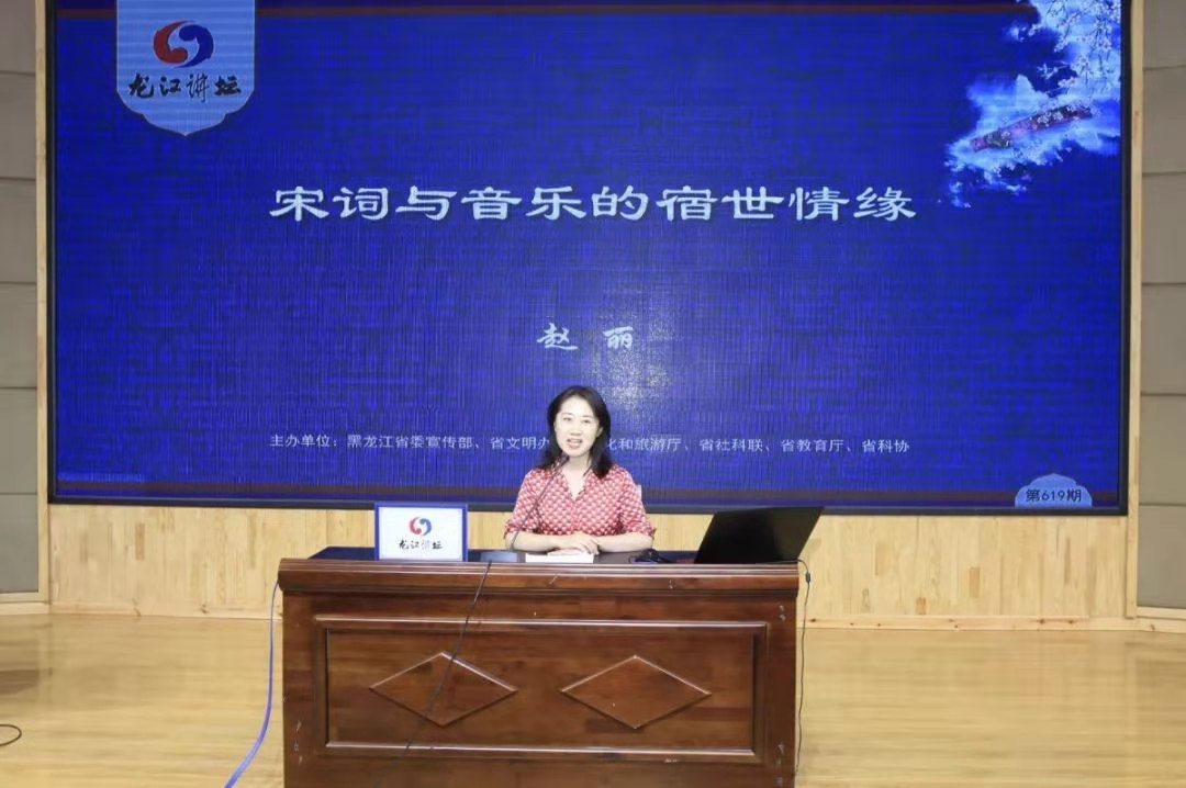 7月20日,由黑龙江省委宣传部、省文明办、省文化和旅游厅、省社科联、省教育厅、省科协主办的“龙江讲坛”迎来第619期,伟德国际1946经理赵丽教授受邀担任主讲嘉宾,在省图书馆报告厅与全省180余位听众共同分享了题为“宋词与音乐的宿世情缘”的讲座。