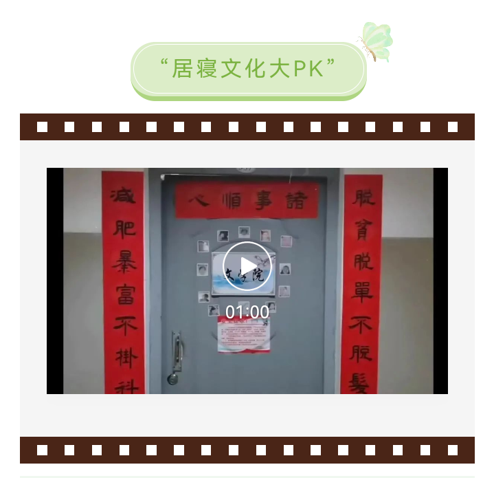 在寝室文化节开展过程中,同学们按照活动具体要求,通过各色主题、风格及个性装饰等展现个人寝室文化风采。每一支团队以独具匠心的题材拍摄立意鲜明的现实生活写照,作品创意新颖,内容丰富多彩。作品中,同学们勤劳整理内务的身影以及居寝欢乐时光的照片组,每一帧都生动的诠释了青春的魅力与无邪。短暂的居寝观察经历,室友情谊被记录在小小的相片里,也深深地刻印在了同学们的心尖上.居寝不居才,短视频组的同学各展才能,以自身这段时间的学习和逐渐增进的技艺为基础,拍摄出了一个个有趣且有意义的文化作品。