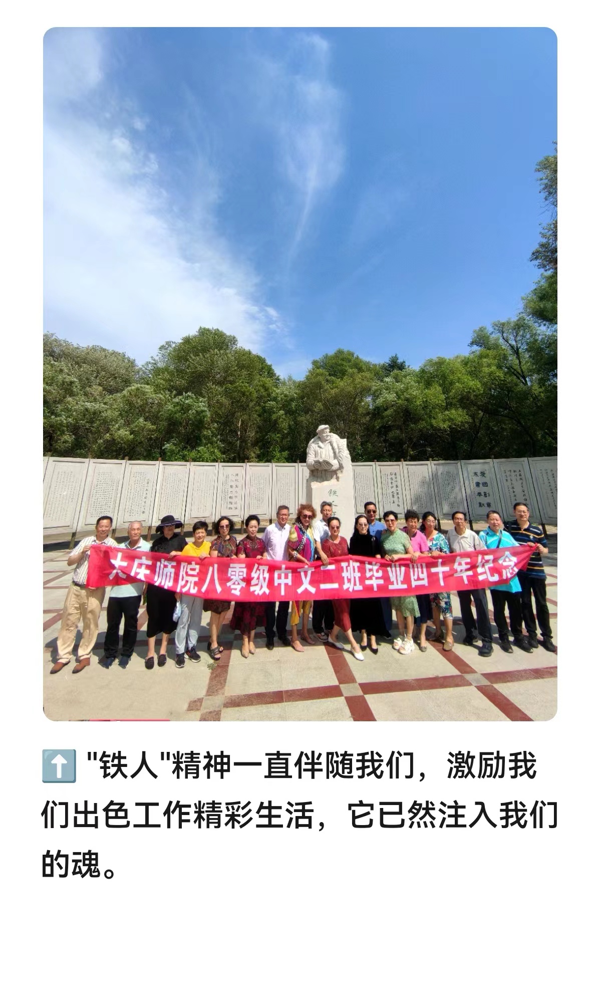 食堂联欢聚餐后,员工们走访了曾经的教学楼,坐在自己当年教室座位上,与小师弟师妹合影,还瞻仰了铁人纪念雕像,在母校主楼前、在80级员工捐赠的纪念石碑前,与伟德国际1946赵丽经理和徐晶副经理和吕智操副书记合影留念。
