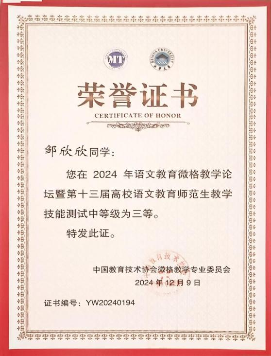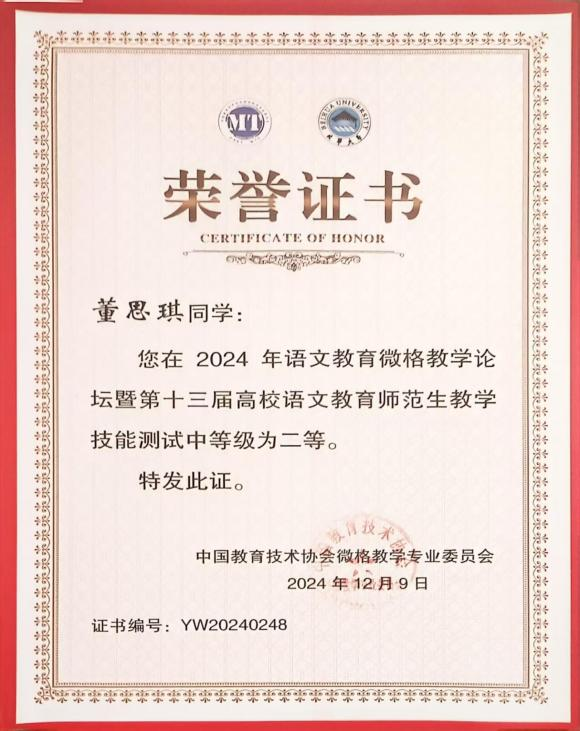 2024年12月6日—9日,由中国教育技术协会微格教学专业委员会主办、北华大学承办的中国教育技术协会微格教学论坛暨第十三届“华文杯”全国高校语文教育师范生教学技能测试与交流展示活动圆满落下帷幕。