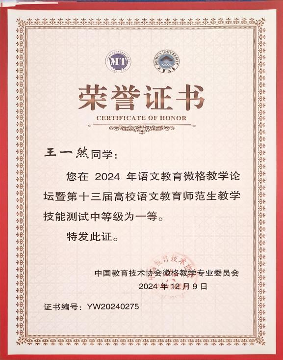 最终,王一然获得教学技能测试一等奖,董思琪、金佳茹获得教学技能测试二等奖,邹欣欣、夏婉茹、赵佳琪获得教学技能测试三等奖。