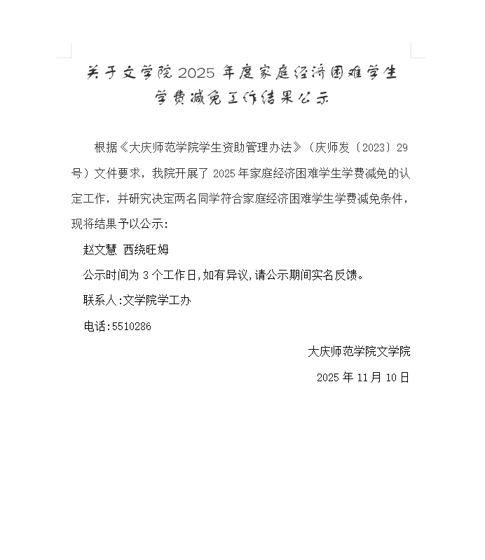 关于伟德国际19462025年度家庭经济困难员工学费减免工作结果公示
